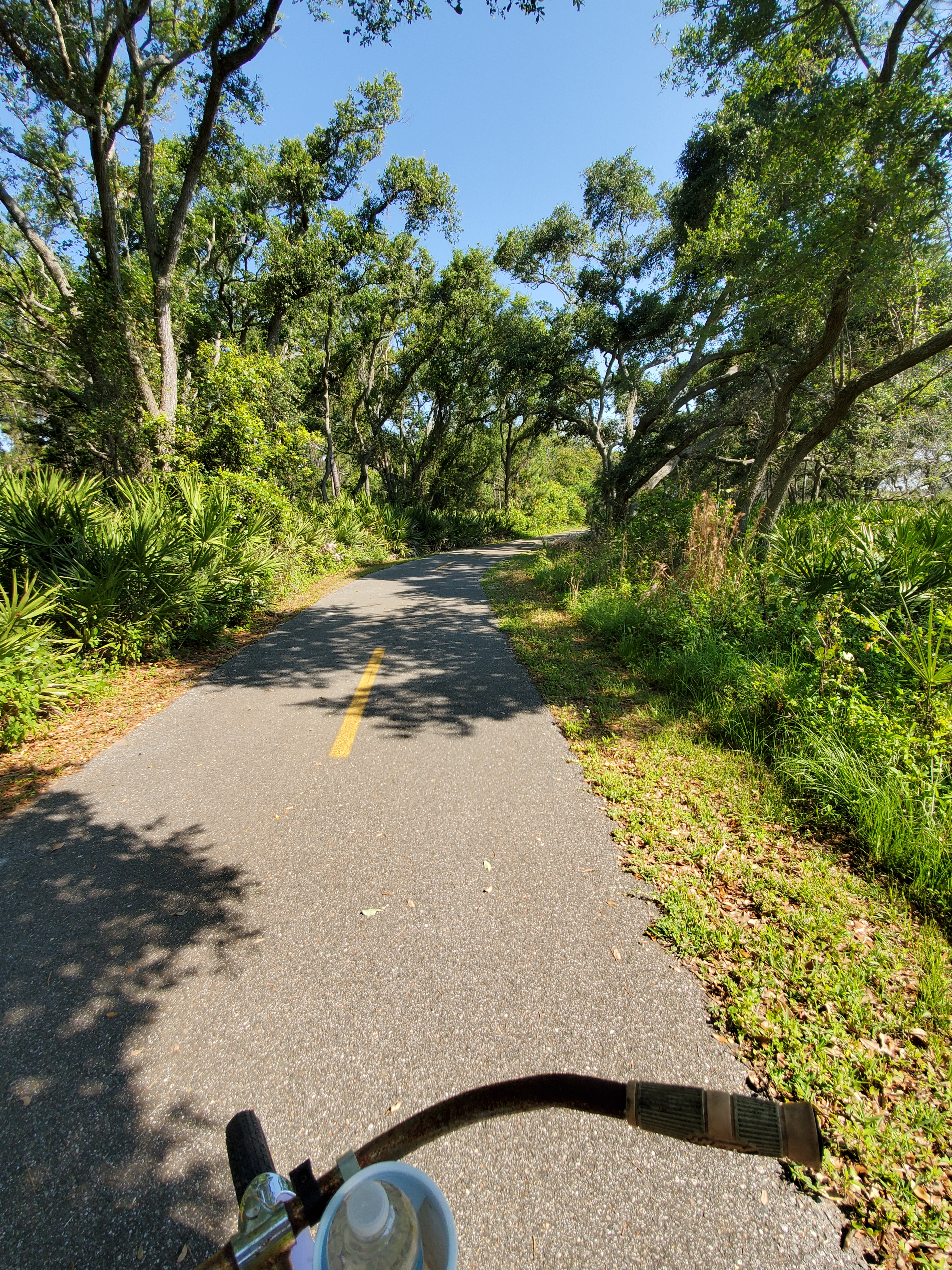 Big Talbot Island is located in Jacksonville, Florida. It is GREAT for biking and hiking. It has a paved trail that is 11 miles each way (22 miles round trip), and three smaller trails that are each 1 mile round trip. It is a great workout.